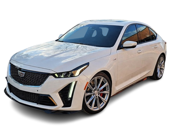 The Cadillac CT5-V with the RARE Rift Metallic exterior color is paired with a luxurious Jet Black Leather with Red Accents interior, featuring carbon fiber trim, alloy pedals, performance seats, and modern tech like ambient lighting and advanced infotainment. This combination offered a high-performance, racing-inspired feel with premium materials, designed for exhilaration and sophistication.